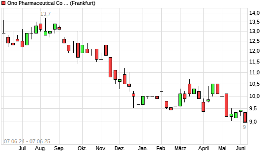 Mit dem Rücksetzer auf 9,00 EUR hat die Ono Pharmaceut.-Aktie (ISIN JP3197600004) am 06.06.2025 ein neues 10-Jahres-Tief erreicht und damit den Kurs vom 12.05.2025 eingestellt.Die Ono Pharmaceut.-Aktie ...weiterlesen