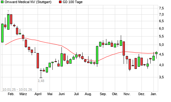 Mit dem Anstieg auf 4,61 EUR hat die Onward Medical-Aktie am 09.01.2026 die 100-Tage-Linie nach oben gekreuzt.Die Onward Medical-Aktie befindet sich seit dem 08.01.2026 im langfristigen Aufwärtstrend ...weiterlesen