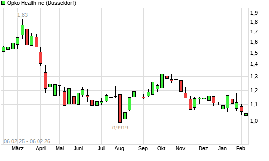 Mit dem Rücksetzer auf 1,00 EUR hat die Opko Health-Aktie (ISIN US68375N1037) am 05.02.2026 ein neues 12-Monats-Tief erreicht und damit den Kurs vom 07.08.2025 eingestellt.Die ...weiterlesen