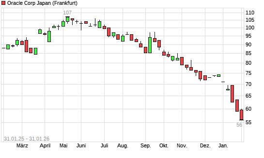 Mit dem Rücksetzer auf 56,00 EUR hat die Oracle Japan-Aktie (ISIN JP3689500001) am 30.01.2026 ein neues 3-Jahres-Tief erreicht und damit den Kurs vom 29.01.2026 eingestellt.Die Oracle Japan-Aktie ...weiterlesen