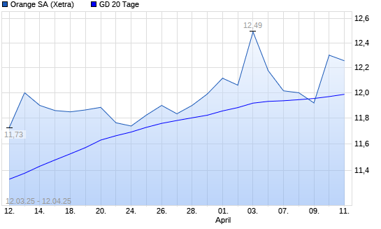 Mit dem Anstieg auf 12,23 EUR hat die Orange-Aktie am 11.04.2025 die 20-Tage-Linie nach oben gekreuzt.Die Orange-Aktie befindet sich seit dem 15.01.2025 im langfristigen Aufwärtstrend und hat ...weiterlesen