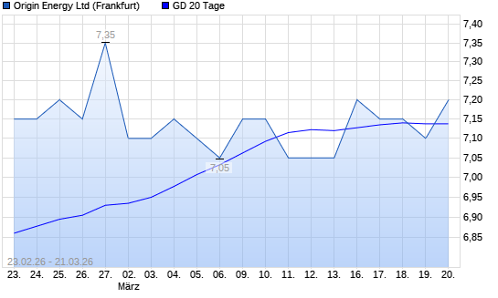 Mit dem Anstieg auf 7,20 EUR hat die Origin Energy-Aktie am 20.03.2026 die 20-Tage-Linie nach oben gekreuzt.Die Origin Energy-Aktie befindet sich seit dem 11.02.2026 im ...weiterlesen