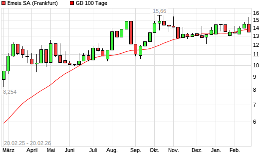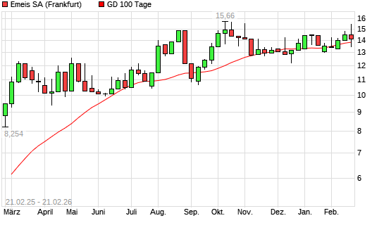 Mit dem Anstieg auf 14,11 EUR hat die Orpea-Aktie am 20.02.2026 die 100-Tage-Linie nach oben gekreuzt.Die Orpea-Aktie befindet sich seit dem 14.02.2025 im langfristigen Aufwärtstrend ...weiterlesen