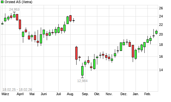 Mit dem Anstieg auf 20,84 EUR hat die Orsted-Aktie (ISIN DK0060094928) am 17.02.2026 ein neues 6-Monats-Hoch erreicht und damit den Kurs vom 16.02.2026 eingestellt.Die ...weiterlesen