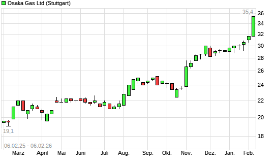 Mit dem Anstieg auf 34,00 EUR hat die Osaka Gas-Aktie (ISIN JP3180400008) am 05.02.2026 ein neues All-Time-High erreicht und damit den Kurs vom 03.02.2026 eingestellt.Die Osaka ...weiterlesen