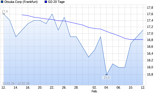 Mit dem Anstieg auf 16,90 EUR hat die Otsuka-Aktie am 11.02.2026 die 20-Tage-Linie nach oben gekreuzt.Die Otsuka-Aktie befindet sich seit dem 27.01.2026 im langfristigen Abwärtstrend ...weiterlesen