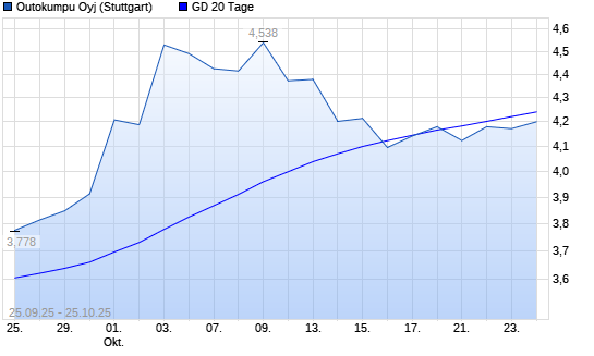 Mit dem Anstieg auf 4,23 EUR hat die Outokumpu-Aktie am 24.10.2025 die 20-Tage-Linie nach oben gekreuzt.Die Outokumpu-Aktie befindet sich seit dem 08.08.2025 im langfristigen Aufwärtstrend und ...weiterlesen