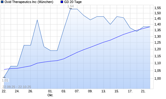 Mit dem Anstieg auf 1,37 EUR hat die Ovid Therapeutics-Aktie am 21.10.2025 die 20-Tage-Linie nach oben gekreuzt.Der Abstand zur 200-Tage-Linie beträgt aktuell +152,63%.