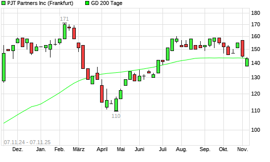 Mit dem Anstieg auf 143,00 EUR hat die PJT Partners-Aktie am 06.11.2025 die 200-Tage-Linie nach oben gekreuzt.Die PJT Partners-Aktie befand sich seit dem 05.11.2025 im langfristigen Abwärtstrend ...weiterlesen