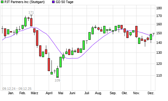 Mit dem Anstieg auf 149,00 EUR hat die PJT Partners-Aktie am 08.12.2025 die 50-Tage-Linie nach oben gekreuzt.Die PJT Partners-Aktie befindet sich seit dem 04.12.2025 im ...weiterlesen