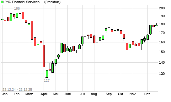 Mit dem Anstieg auf 181,00 EUR hat die PNC Financial Services-Aktie (ISIN US6934751057) am 22.12.2025 ein neues 6-Monats-Hoch erreicht und damit den Kurs vom 12.12.2025 eingestellt.Die PNC Financial ...weiterlesen