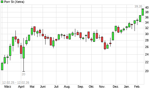 Mit dem Anstieg auf 38,60 EUR hat die PORR-Aktie (ISIN AT0000609607) am 11.02.2026 ein neues 5-Jahres-Hoch erreicht und damit den Kurs vom 10.02.2026 eingestellt.Die PORR-Aktie befindet sich ...weiterlesen