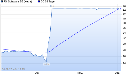 Mit dem Rücksetzer auf 44,50 EUR hat die PSI Software-Aktie am 03.12.2025 die 38-Tage-Linie nach unten gekreuzt.Die PSI Software-Aktie befindet sich seit dem 09.10.2025 im langfristigen ...weiterlesen