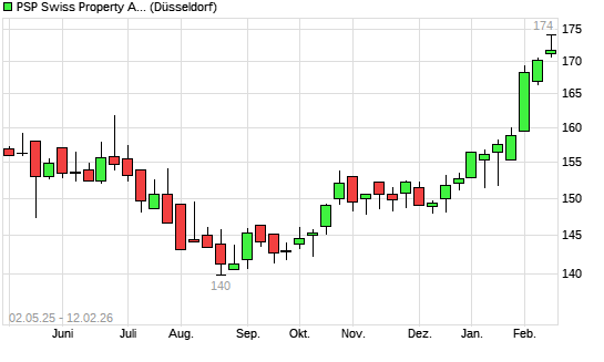 Mit dem Anstieg auf 172,70 EUR hat die PSP Swiss Property-Aktie (ISIN CH0018294154) am 11.02.2026 ein neues All-Time-High erreicht und damit den Kurs vom 10.02.2026 eingestellt.Die PSP Swiss ...weiterlesen