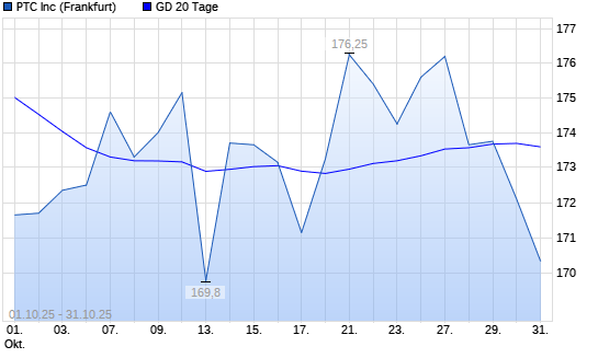 Mit dem Rücksetzer auf 172,10 EUR hat die PTC-Aktie am 30.10.2025 die 20-Tage-Linie nach unten gekreuzt.Die PTC-Aktie befindet sich seit dem 10.07.2025 im langfristigen Aufwärtstrend und ...weiterlesen