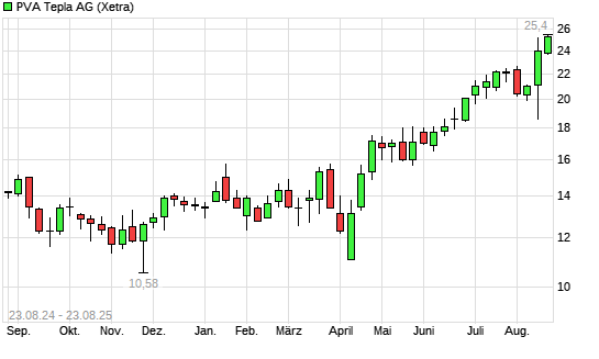 Mit dem Anstieg auf 25,22 EUR hat die PVA TePla-Aktie (ISIN DE0007461006) am 22.08.2025 ein neues 12-Monats-Hoch erreicht und damit den Kurs vom 14.08.2025 eingestellt.Die PVA ...weiterlesen