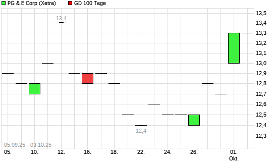 Mit dem Anstieg auf 13,30 EUR hat die Pacific Gas and Electric Company-Aktie am 02.10.2025 die 100-Tage-Linie nach oben gekreuzt.Die Pacific Gas and Electric Company-Aktie befindet sich seit ...weiterlesen