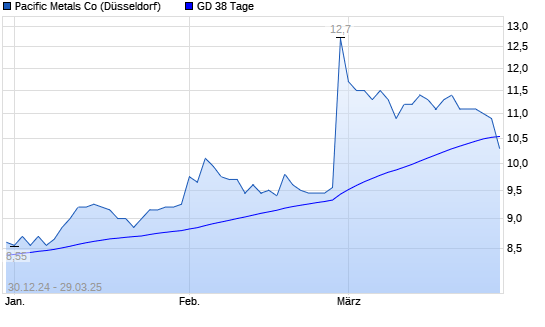 Mit dem Rücksetzer auf 10,40 EUR hat die Pacific Metals Co-Aktie am 28.03.2025 die 38-Tage-Linie nach unten gekreuzt.Die Pacific Metals Co-Aktie befindet sich seit dem 08.08.2024 im langfristigen ...weiterlesen