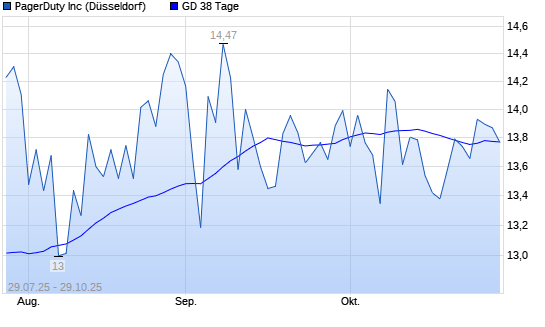 Mit dem Rücksetzer auf 13,67 EUR hat die PagerDuty-Aktie am 28.10.2025 die 38-Tage-Linie nach unten gekreuzt.Die PagerDuty-Aktie befindet sich seit dem 28.03.2025 im langfristigen Abwärtstrend ...weiterlesen