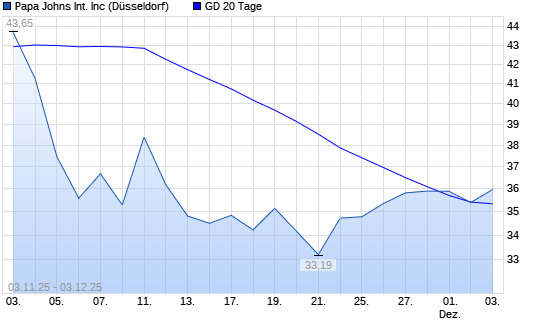 Mit dem Anstieg auf 35,33 EUR hat die Papa Johns International-Aktie am 02.12.2025 die 20-Tage-Linie nach oben gekreuzt.Die Papa Johns International-Aktie befindet sich seit dem 05.11.2025 im ...weiterlesen