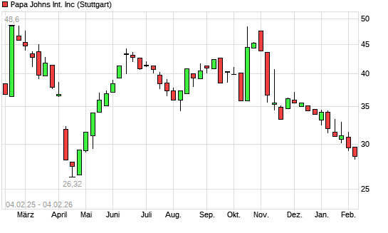 Mit dem Rücksetzer auf 28,35 EUR hat die Papa Johns International-Aktie (ISIN US6988131024) am 03.02.2026 ein neues 6-Monats-Tief erreicht und damit den Kurs vom 02.02.2026 eingestellt.Die ...weiterlesen