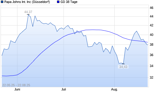 Mit dem Rücksetzer auf 37,69 EUR hat die Papa Johns International-Aktie am 21.08.2025 die 38-Tage-Linie nach unten gekreuzt.Die Papa Johns International-Aktie befindet sich seit dem 20.08.2025 ...weiterlesen