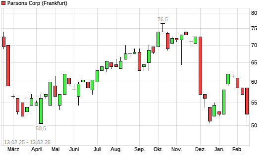 Mit dem Rücksetzer auf 50,50 EUR hat die Parsons-Aktie (ISIN US70202L1026) am 12.02.2026 ein neues 12-Monats-Tief erreicht und damit den Kurs vom 19.12.2025 eingestellt.Die Parsons-Aktie ...weiterlesen