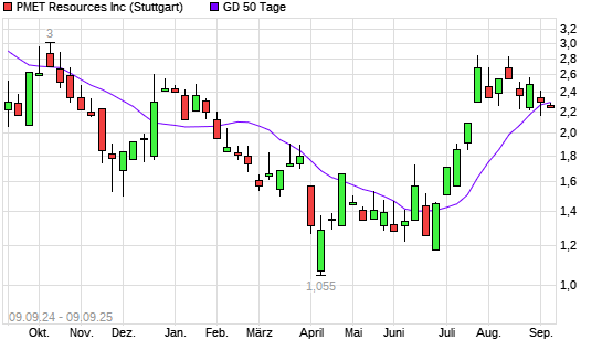 Mit dem Rücksetzer auf 2,26 EUR hat die Patriot Battery Metals-Aktie am 08.09.2025 die 50-Tage-Linie nach unten gekreuzt.Die Patriot Battery Metals-Aktie befindet sich seit dem 10.07.2025 ...weiterlesen