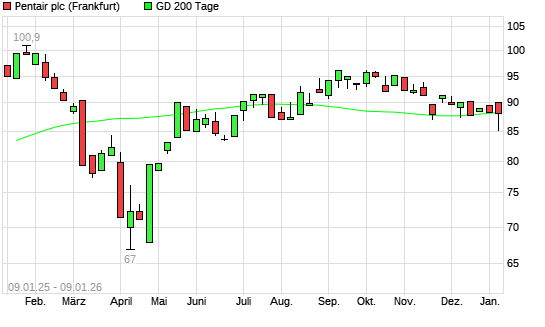 Mit dem Anstieg auf 88,44 EUR hat die Pentair-Aktie am 08.01.2026 die 200-Tage-Linie nach oben gekreuzt.Die Pentair-Aktie befand sich seit dem 07.01.2026 im langfristigen Abwärtstrend und hat ...weiterlesen
