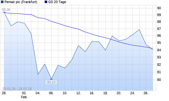 Mit dem Rücksetzer auf 83,70 EUR hat die Pentair-Aktie am 27.02.2026 die 20-Tage-Linie nach unten gekreuzt.Die Pentair-Aktie befindet sich seit dem 03.02.2026 im ...weiterlesen