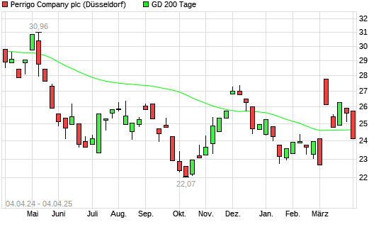 Mit dem Rücksetzer auf 24,66 EUR hat die Perrigo Company-Aktie am 03.04.2025 die 200-Tage-Linie nach unten gekreuzt.Die Perrigo Company-Aktie befand sich seit dem 28.02.2025 im langfristigen ...weiterlesen
