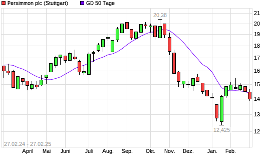 Mit dem Rücksetzer auf 14,36 EUR hat die Persimmon-Aktie am 26.02.2025 die 50-Tage-Linie nach unten gekreuzt.Die Persimmon-Aktie befindet sich seit dem 06.11.2024 im langfristigen Abwärtstrend ...weiterlesen