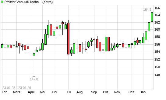 Mit dem Anstieg auf 162,20 EUR hat die Pfeiffer Vacuum-Aktie (ISIN DE0006916604) am 22.01.2026 ein neues 6-Monats-Hoch erreicht und damit den Kurs vom 16.01.2026 eingestellt.Die Pfeiffer Vacuum-Aktie ...weiterlesen