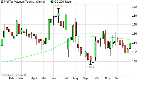 Mit dem Anstieg auf 154,20 EUR hat die Pfeiffer Vacuum-Aktie am 03.01.2025 die 200-Tage-Linie nach oben gekreuzt.Die Pfeiffer Vacuum-Aktie befand sich seit dem 22.10.2024 im langfristigen Aufwärtstrend ...weiterlesen