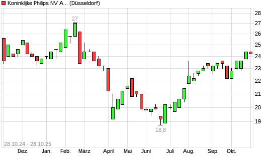 Mit dem Anstieg auf 25,00 EUR hat die Philips Electronics ADR-Aktie (ISIN US5004723038) am 27.10.2025 ein neues 6-Monats-Hoch erreicht und damit den Kurs vom 20.10.2025 eingestellt.Die Philips ...weiterlesen
