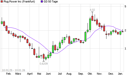 Mit dem Anstieg auf 2,12 EUR hat die Plug Power-Aktie am 04.03.2026 die 100-Tage-Linie nach oben gekreuzt.Die Plug Power-Aktie befindet sich seit dem 03.03.2026 im ...weiterlesen