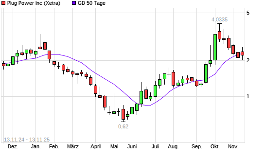 Mit dem Anstieg auf 2,34 EUR hat die Plug Power-Aktie am 12.11.2025 die 50-Tage-Linie nach oben gekreuzt.Die Plug Power-Aktie befindet sich seit dem 16.09.2025 im langfristigen Aufwärtstrend ...weiterlesen