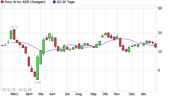 Mit dem Rücksetzer auf 11,90 EUR hat die Pony AI-Aktie am 29.01.2026 die 50-Tage-Linie nach unten gekreuzt.Die Pony AI-Aktie befindet sich seit dem 26.01.2026 im ...weiterlesen