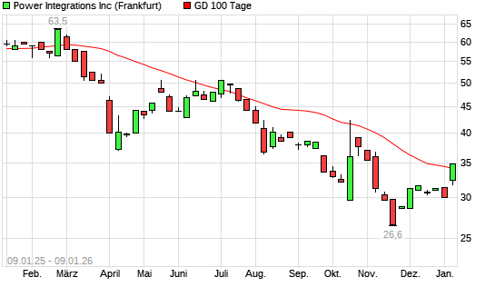 Mit dem Anstieg auf 34,40 EUR hat die Power Integrations-Aktie am 08.01.2026 die 100-Tage-Linie nach oben gekreuzt.Die Power Integrations-Aktie befindet sich seit dem 28.02.2025 im langfristigen ...weiterlesen