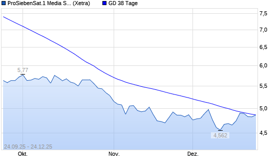 Mit dem Anstieg auf 4,86 EUR hat die ProSiebenSat.1-Aktie am 23.12.2025 die 38-Tage-Linie nach oben gekreuzt.Die ProSiebenSat.1-Aktie befindet sich seit dem 12.09.2025 im langfristigen Abwärtstrend ...weiterlesen