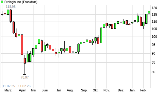 Mit dem Anstieg auf 117,64 EUR hat die Prologis-Aktie (ISIN US74340W1036) am 10.02.2026 ein neues 6-Monats-Hoch erreicht und damit den Kurs vom 06.02.2026 eingestellt.Die Prologis-Aktie befindet ...weiterlesen