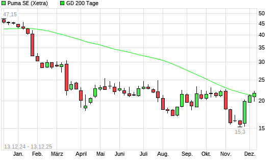 Mit dem Anstieg auf 21,69 EUR hat die Puma-Aktie am 12.12.2025 die 200-Tage-Linie nach oben gekreuzt.Die Puma-Aktie befand sich seit dem 09.01.2025 im langfristigen Aufwärtstrend und hat in ...weiterlesen
