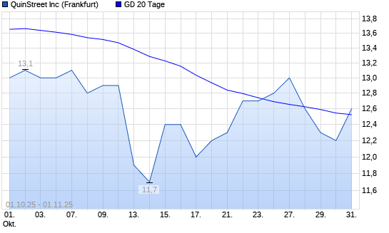 Mit dem Anstieg auf 12,60 EUR hat die QuinStreet-Aktie am 31.10.2025 die 20-Tage-Linie nach oben gekreuzt.Die QuinStreet-Aktie befindet sich seit dem 04.03.2025 im langfristigen Abwärtstrend ...weiterlesen