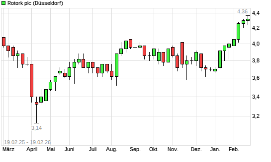 Mit dem Anstieg auf 4,36 EUR hat die ROTORK-Aktie (ISIN GB00BVFNZH21) am 18.02.2026 ein neues 3-Jahres-Hoch erreicht und damit den Kurs vom 17.02.2026 eingestellt.Die ROTORK-Aktie ...weiterlesen