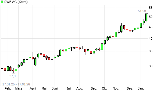 Mit dem Anstieg auf 51,50 EUR hat die RWE-Aktie (ISIN DE0007037129) am 19.01.2026 ein neues 10-Jahres-Hoch erreicht und damit den Kurs vom 16.01.2026 eingestellt.Die RWE-Aktie befindet sich ...weiterlesen