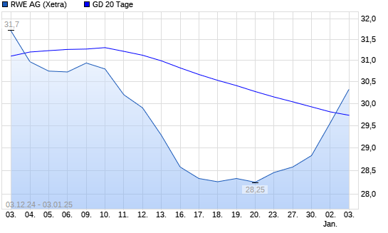 Mit dem Anstieg auf 29,56 EUR hat die RWE-Aktie am 02.01.2025 die 20-Tage-Linie nach oben gekreuzt.Die RWE-Aktie befindet sich seit dem 06.06.2024 im langfristigen Abwärtstrend und hat in diesem ...weiterlesen
