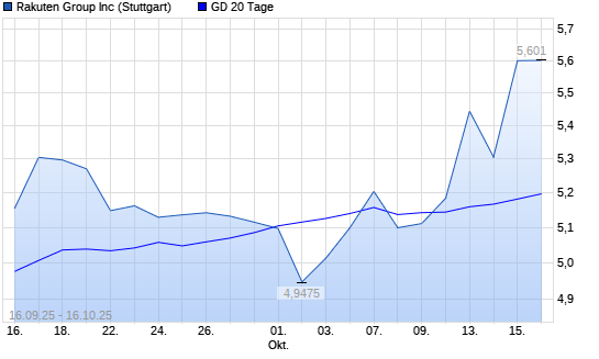 Mit dem Anstieg auf 5,69 EUR hat die Rakuten-Aktie am 15.10.2025 die 20-Tage-Linie nach oben gekreuzt.Die Rakuten-Aktie befindet sich seit dem 10.09.2025 im langfristigen Aufwärtstrend ...weiterlesen