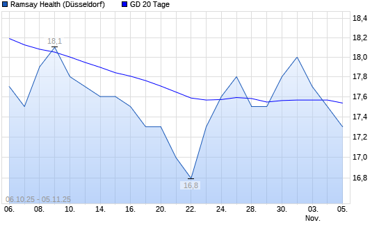 Mit dem Rücksetzer auf 17,60 EUR hat die Ramsay Health-Aktie am 04.11.2025 die 20-Tage-Linie nach unten gekreuzt.Die Ramsay Health-Aktie befindet sich seit dem 28.08.2025 im langfristigen ...weiterlesen