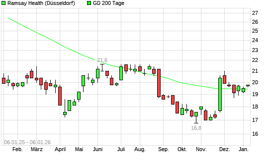Mit dem Anstieg auf 19,80 EUR hat die Ramsay Health-Aktie am 05.01.2026 die 200-Tage-Linie nach oben gekreuzt.Die Ramsay Health-Aktie befand sich seit dem 29.12.2025 im langfristigen Abwärtstrend ...weiterlesen