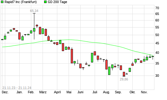 Mit dem Anstieg auf 38,74 EUR hat die Rapid7-Aktie am 20.11.2024 die 200-Tage-Linie nach oben gekreuzt.Die Rapid7-Aktie befand sich seit dem 14.11.2024 im langfristigen Aufwärtstrend und hat ...weiterlesen